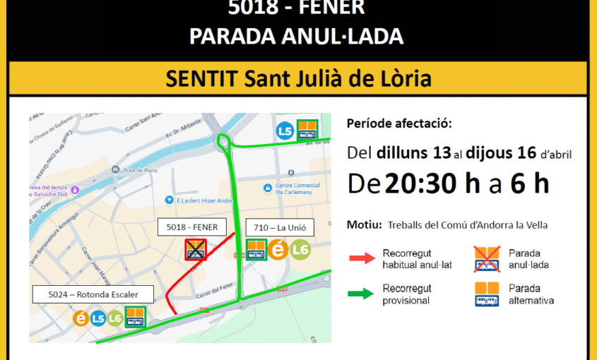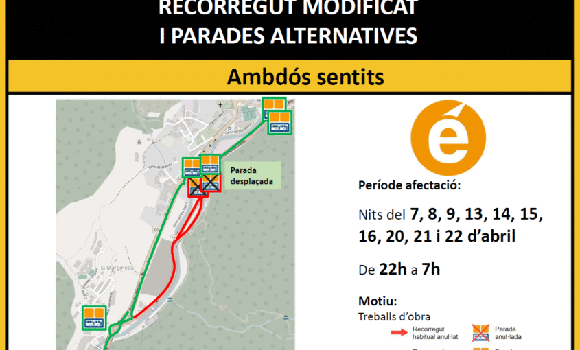 Afectacions en el Bus Exprés el primer i darrer servei del dia fins el 22 d’abril El Bus Exprés patirà un canvi de trajecte en el primer i darrer servei del dia a causa d’unes obres que tenen lloc a la zona de la rotonda de la Margineda de les 22h a les 7h que