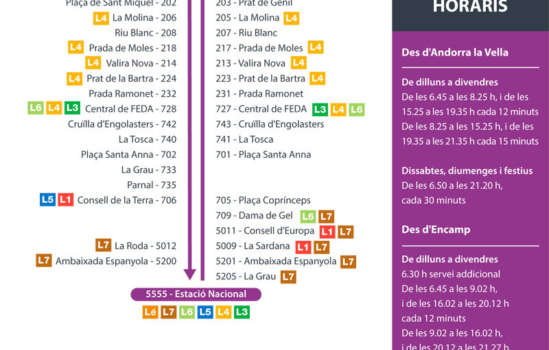 Incidències a diverses línies per l’Andorra Cycling Master el 19 d’octubre El proper diumenge 19 d’octubre hi haurà diverses incidències a les línies L1, L2, L5, L6 i L7 amb motiu de la celebració de l’Andorra Cycling Master. Les afectacions tindran lloc entre 11h i les 13.30h. A continuació us indiquem per hores i per